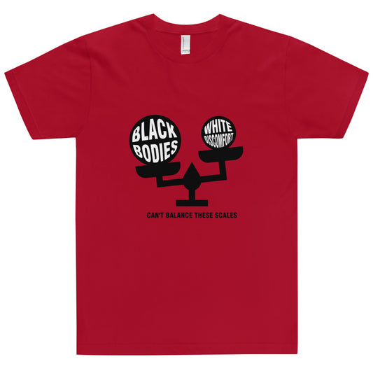 "Can't Balance These Scales" Unisex T-Shirt Black Text and Image