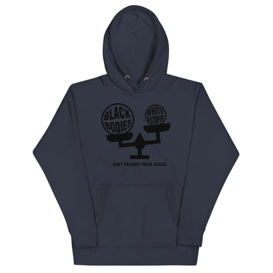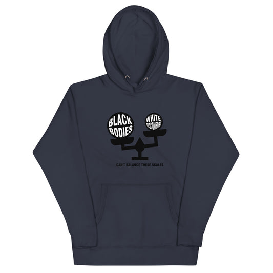 "Can't Balance These Scales" Unisex Hoodie Black Text and Image